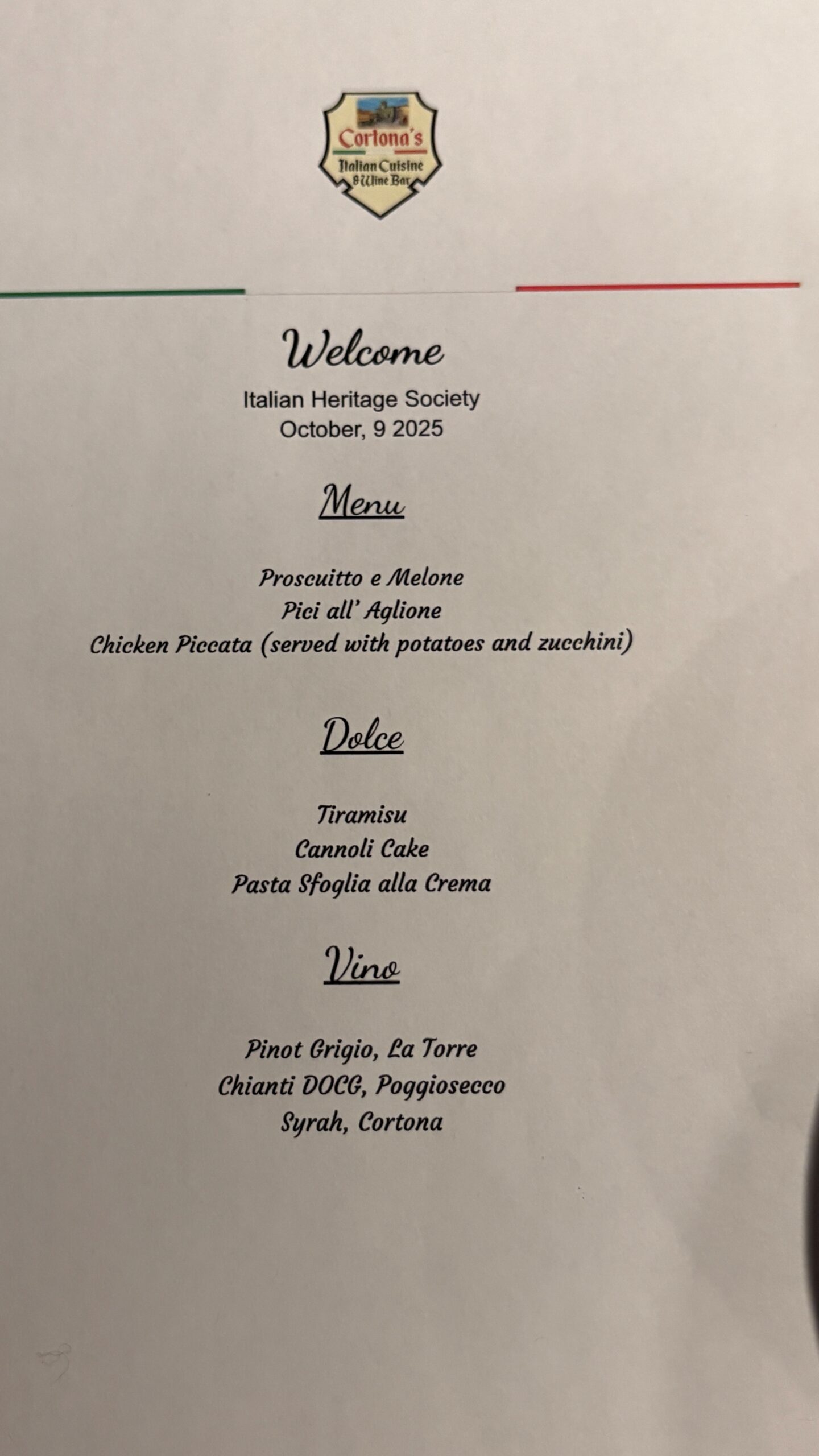 2025 Tuscan Dinner Celebration of Italian Heritage Month